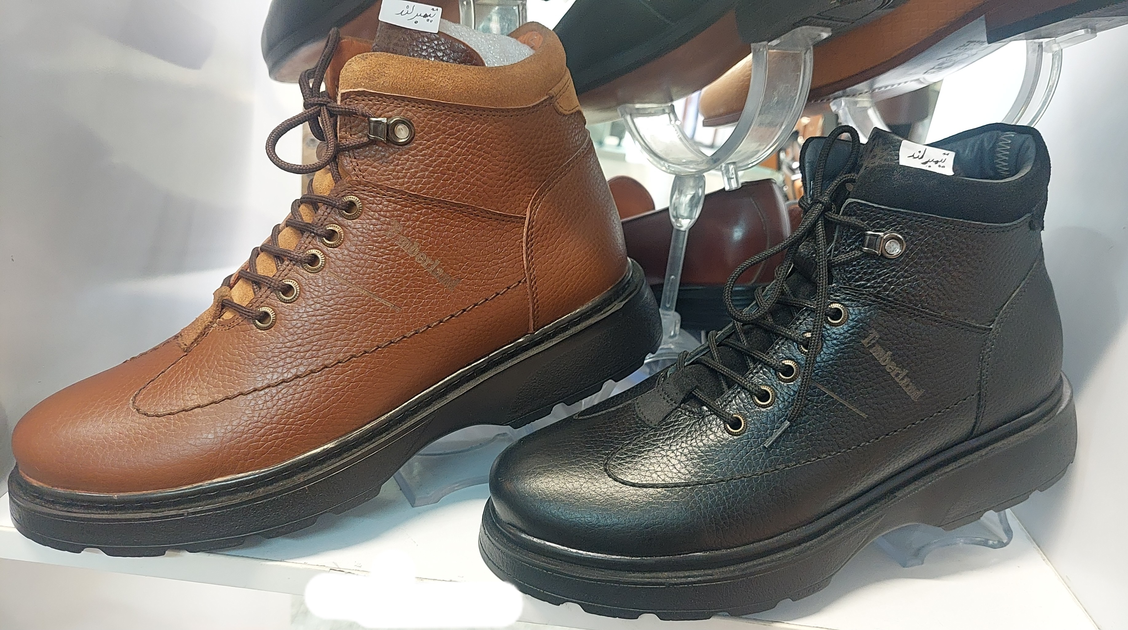 عسلی تمام چرم دست دوز زیره EVA آستر و کفی چرم طبیعی