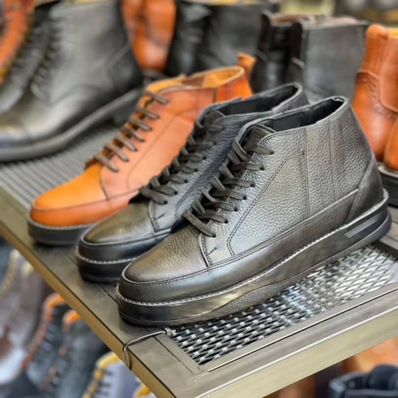 بوت (پوتین) مردانه نیم ساق کشی بندی تمام چرم دست دوز تبریز
